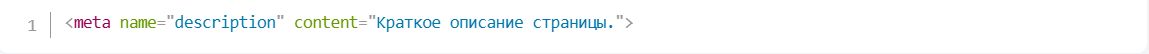 Этот тег предоставляет поисковой системе информацию о том, чему посвящена страница, и может использоваться для формирования сниппетов – коротких описаний, которые отображаются под заголовком страницы в результатах поиска.