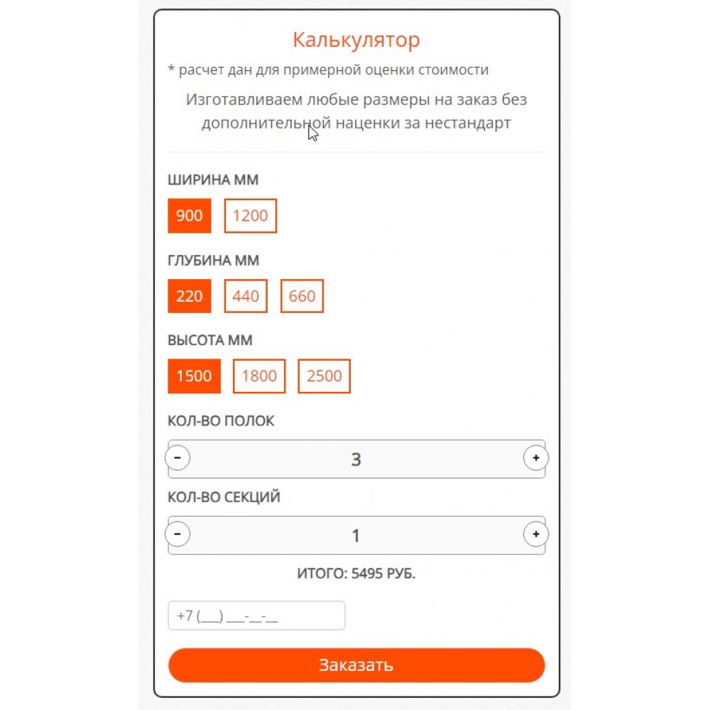 Модуль "Калькулятор стеллажей" от веб-студии Максвебсайт г. Туринск