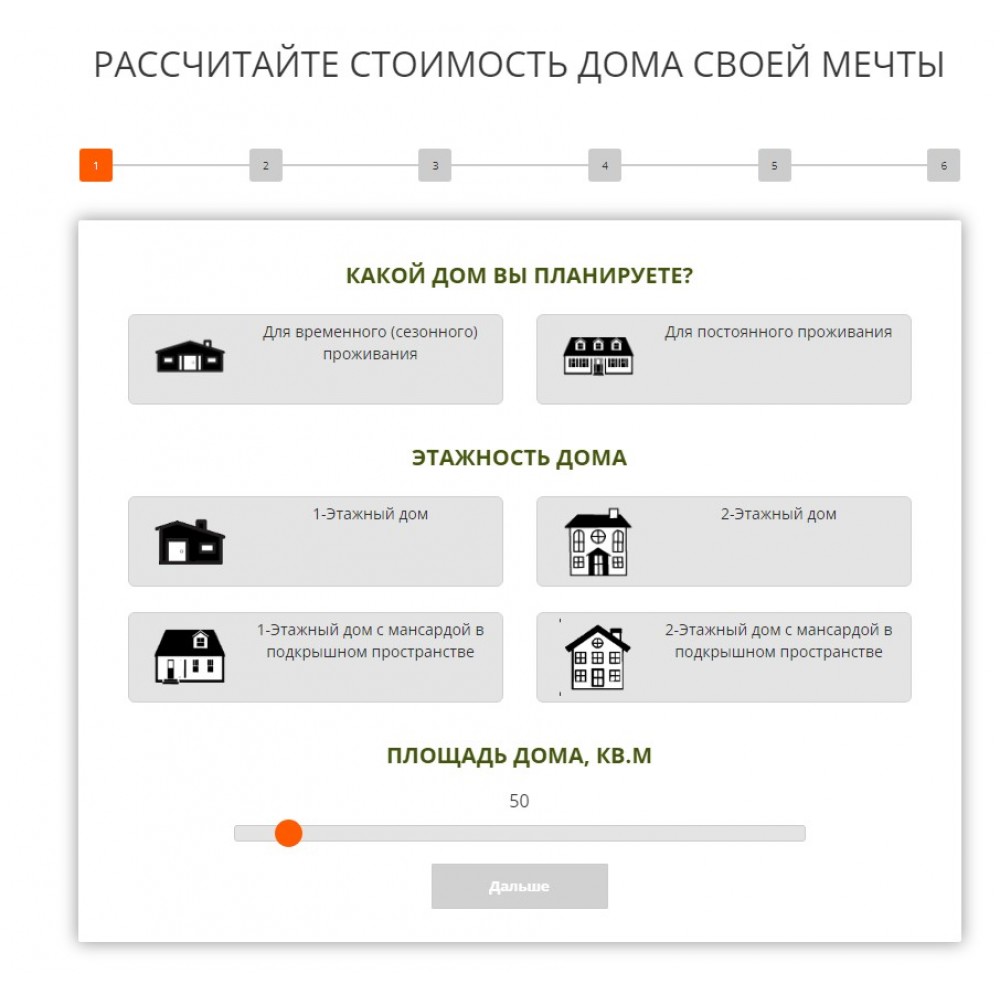 Квиз конфигурации дома от веб-студии Максвебсайт г. Туринск