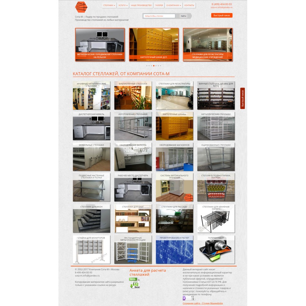 Сайт каталог, по продаже металлических стеллажей, от веб-студии Максвебсайт г. Туринск