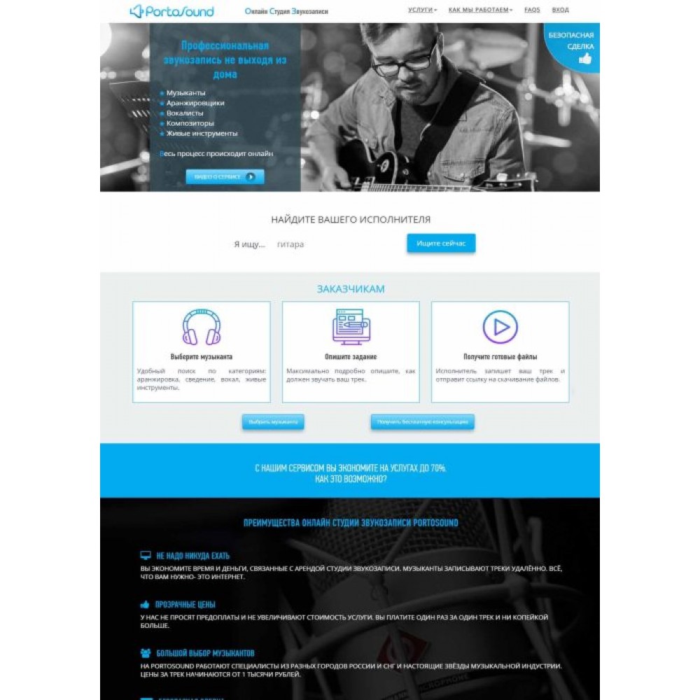 Сайт онлайн-студии звукозаписи Portosound г.Москва от веб-студии Максвебсайт г. Туринск
